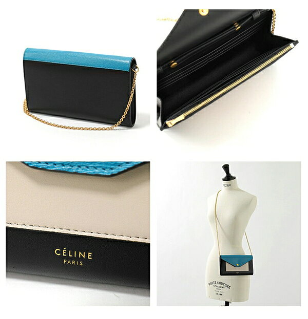 【4時間限定!エントリーで10倍ポイント 5日20:00〜】CELINE セリーヌ 105213ARW.06TA Large Flap on Chain Trifold トライフォールド ショルダーウォレット チェーンバッグ ポシェット カラーTealBlue レディース