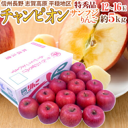 【送料無料】長野・志賀高原平穏地区産 ”チャンピオンふじ” 秀品 大玉12〜16玉 約5kg 化粧箱【予約 12月以降】