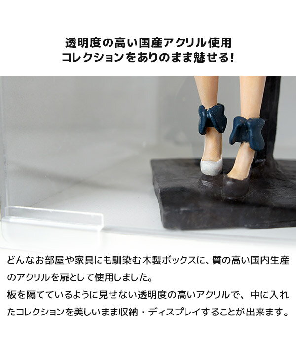キューブボックスアルファ 透明扉付き 上下連結可能なキューブボックスアルファシリーズの透明扉タイプ 【商品仕様】 外寸サイズ:幅34.5cm×高さ34.5cm×奥行29.5cm、板厚12mm 内寸サイズ:幅32cm×高さ30cm×奥行28cm 本体素材:プリント化粧板パーティクルボード 扉素材:アクリル樹脂 付属品:連結用ダボ×4、ねじ穴隠しシール 【生産国】 本体:マレーシア 扉:日本 その他樹脂機構部品:日本 【組み立て】 お客様組み立て品です。