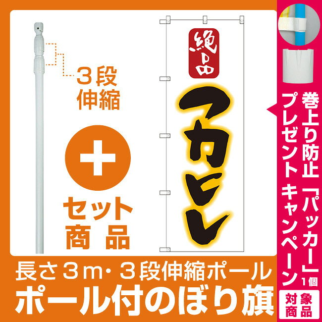 【セット商品】3m・3段伸縮のぼりポール(竿)付 のぼり旗 絶品 フカヒレ (SNB-2195)(ラーメン・中華料理/サイドメニュー)