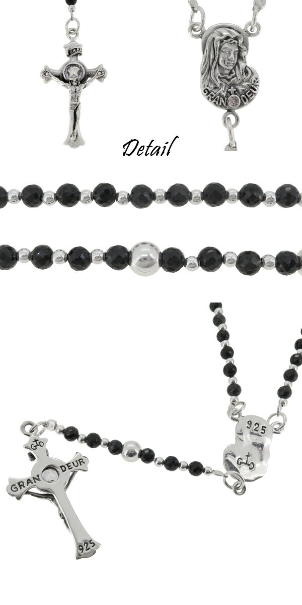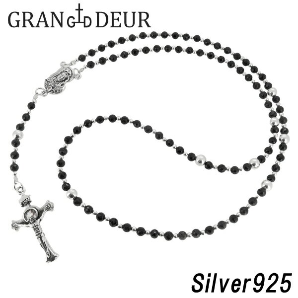 GRAN DEUR クロス キリスト マリア ロザリオ風 シルバーネックレス シルバー925 メンズ メンズネックレス 天然石 サファイア トパーズ ブラックスピネル プレート メダイ 十字架 磔刑 受難 ロザリオ 男性用ネックレス ブランド おしゃれ