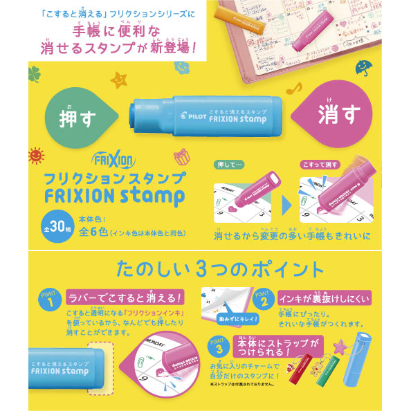 商品番号:SPF-12S-80R 手帳に便利な消せるスタンプ「フリクションスタンプ」に新柄「ファンシーデザイン」シリーズ登場!フリクションインキを使った、こすると消えるスタンプ。