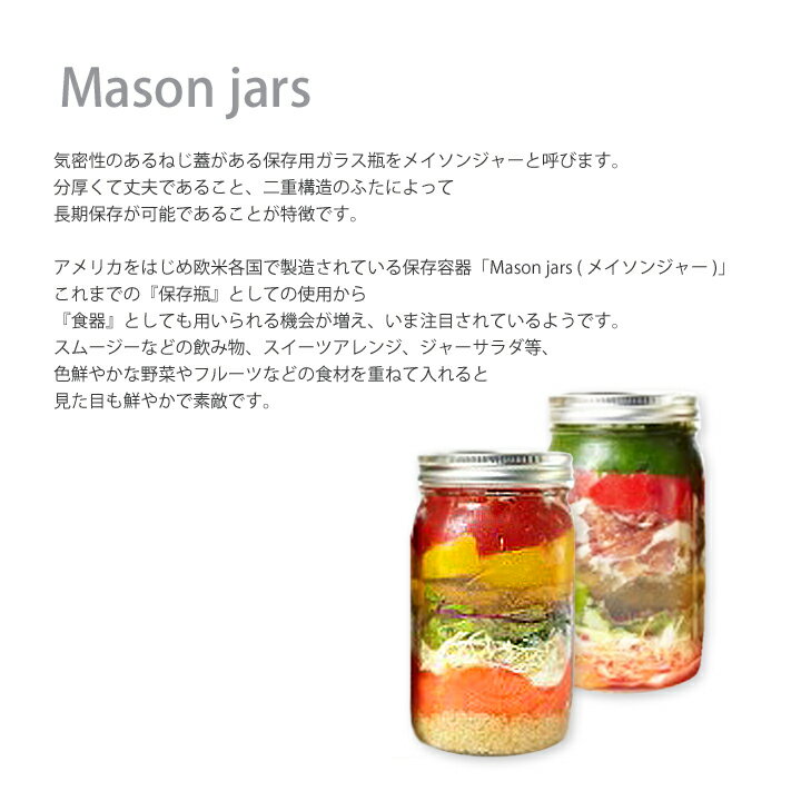 メイソンジャーカラー/Mason Jar color・人気のおしゃれなガラスジャー(グラスジャー ドリンクボトル)。アンティークでレトロ♪サラダジャーやスイーツジャー,キャニスター(保存容器)に♪ガラスグラス/ガラスボトル/クリアガラスタンブラー/ビン/